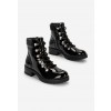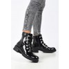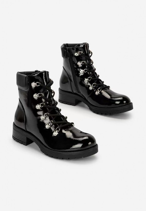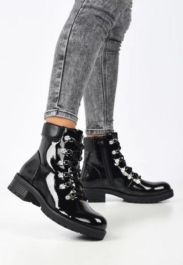 Gležnarji izgled laka, ki imajo kristale pri vezalkah in ze zapenjajo ob strani na zadrgo. Čevelj je podložen. Material: Zgornji del: umetno usnje, lak Podloga in vložek (steljka): tekstil Podplat: drugi materiali