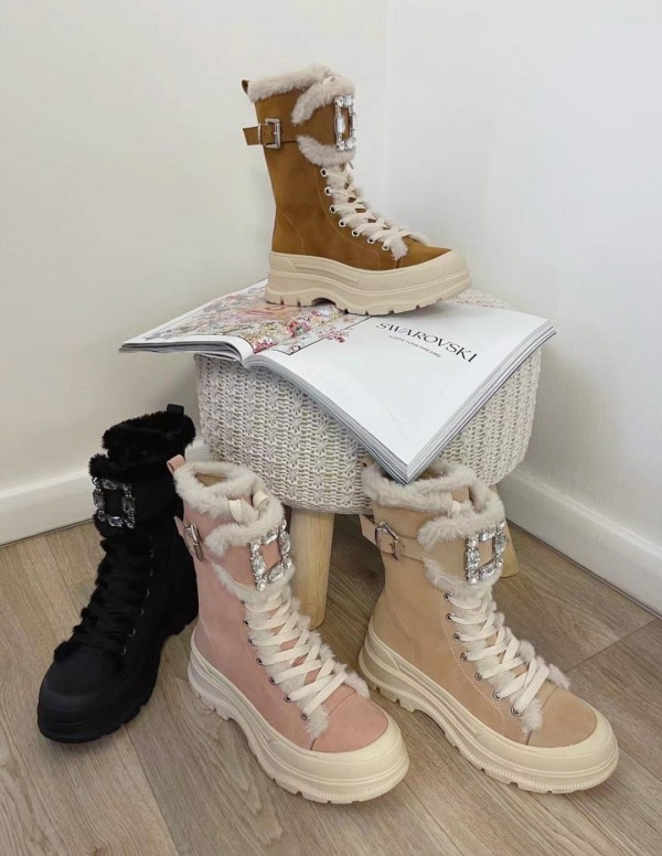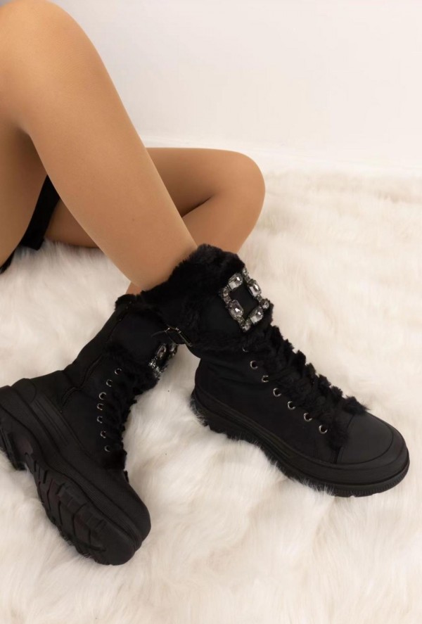 Topli in podloženi zimski polškornji z okrasno šnolo na sprednjem delu čevlja. Čevlji so zelo mehki in udobni ter topli.