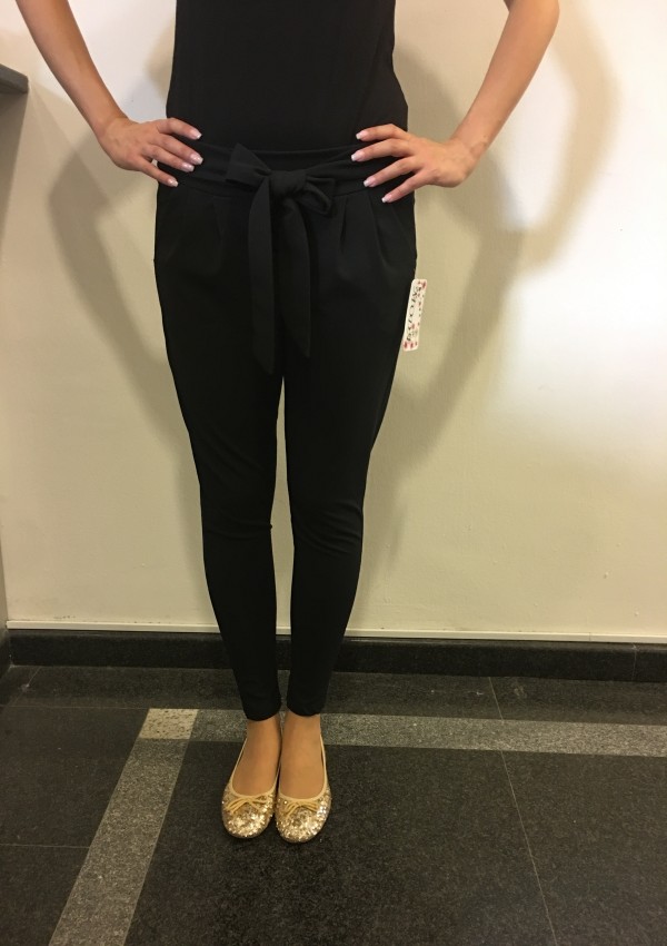 Elegantne hlače, ki imajo spredaj pas narejen na pentljo. Hlače so zelo mehke lepo padejo. Material: 95% polyester in 5% elastan