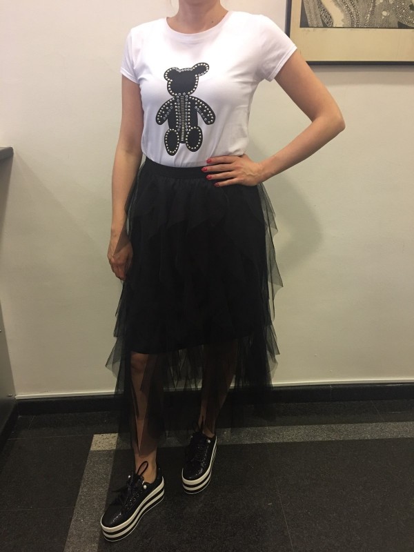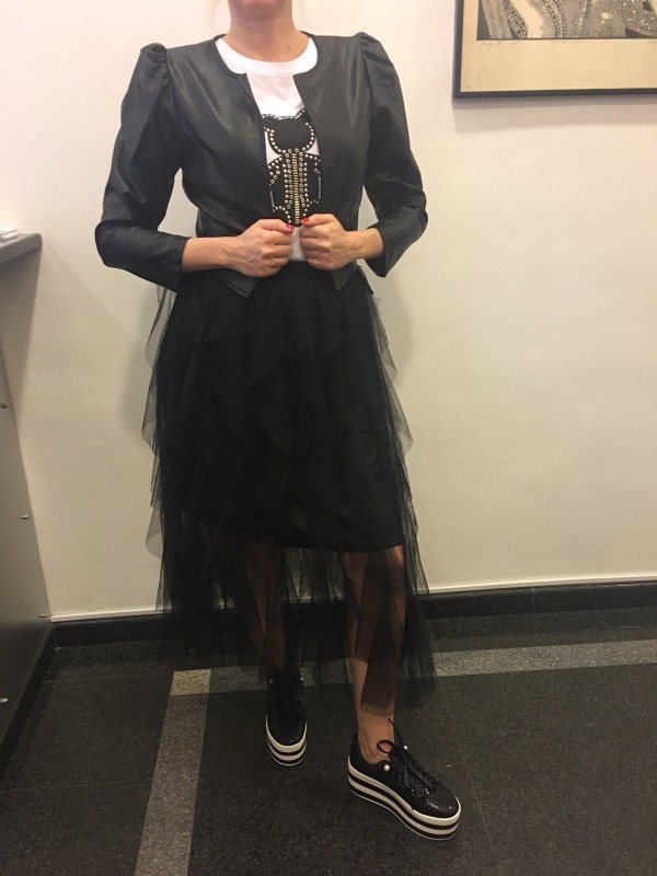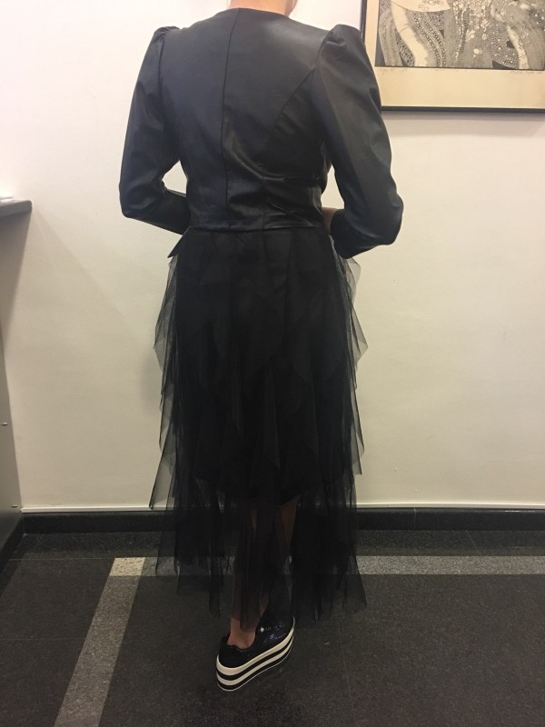 Črno krill iz tila, ki je asimtrično. Material: 100% poliester
