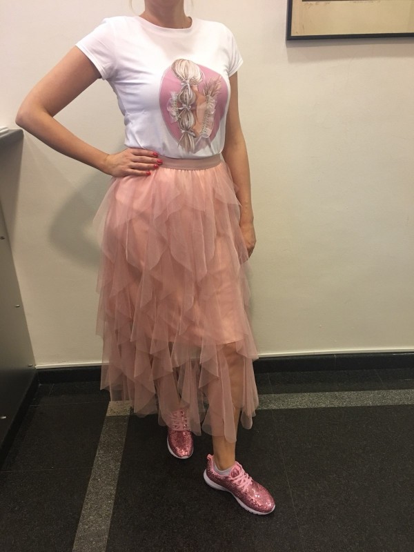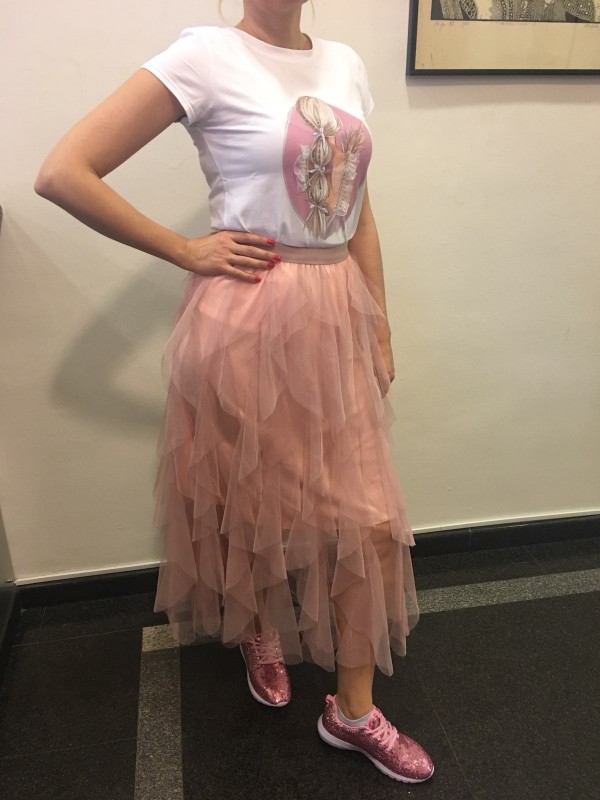 Roza krilo iz tila, ki je asimtrično. Material: 100% poliester