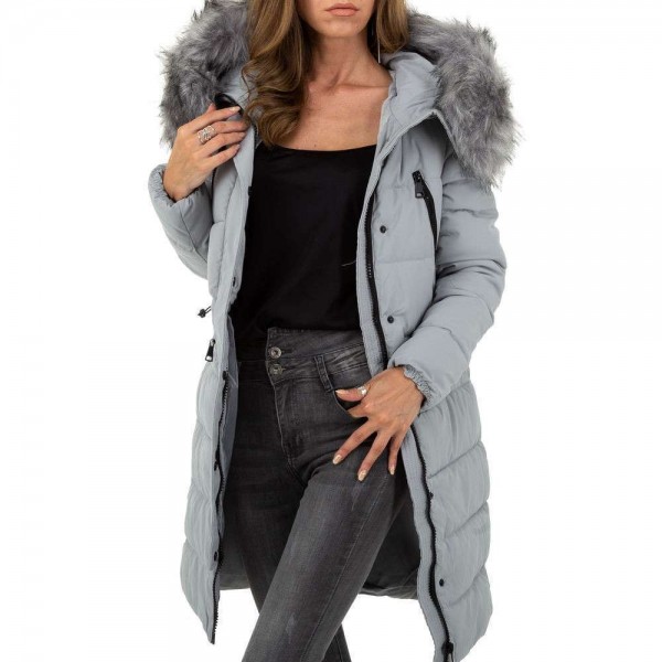 Dolga prešita bunda, ki lepo oblikuje postavo. Je zelo topla in prijetna za nošenje. Na ovratniku ima umetno krzno, ki se ga lahko sname.