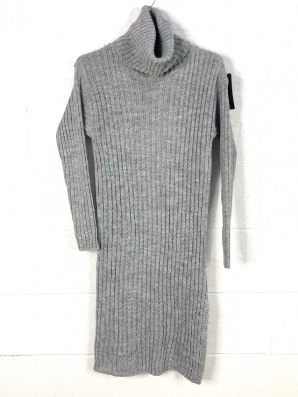 Pletena obleka z puli ovratnikom, ki je preklana ob strani. Material: 100% acril