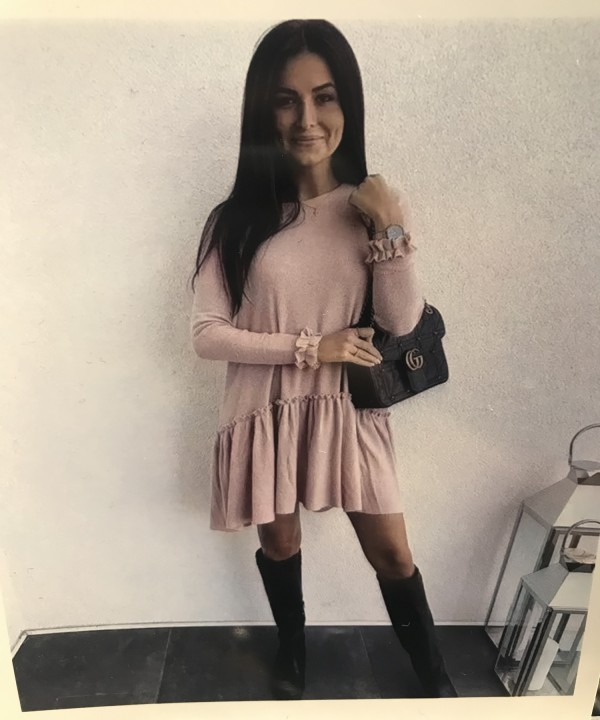 Obleka na zvonec, ki ima volančke na zaključku rokava. Je zelo mehka in prijetna za nošenje.