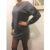 Širok pulover, ki se lahko nosi tudi kot tunika ali obleka z bleščicami na rokavih. Material: 100% bombaž
