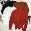 Kratek širok pulover z izrezom na V, ki je ob robovih scefran. Material: 100% poliacrylic Velikost: UNI