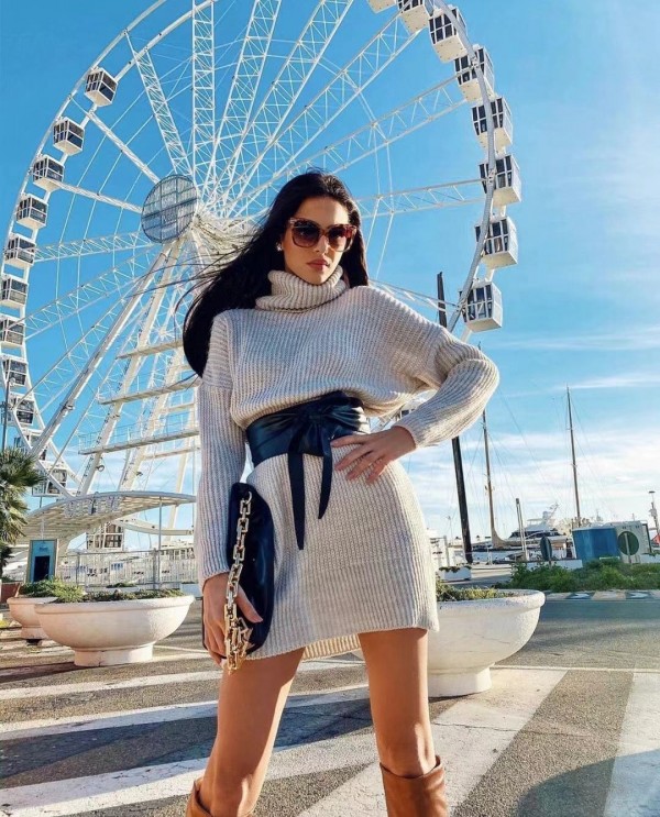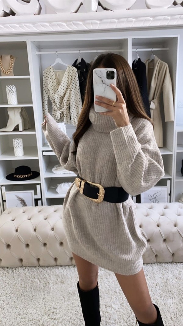 Dolg over size pulover z ovratnikom na puli, ki se lahko nosi tudi kot obleka.