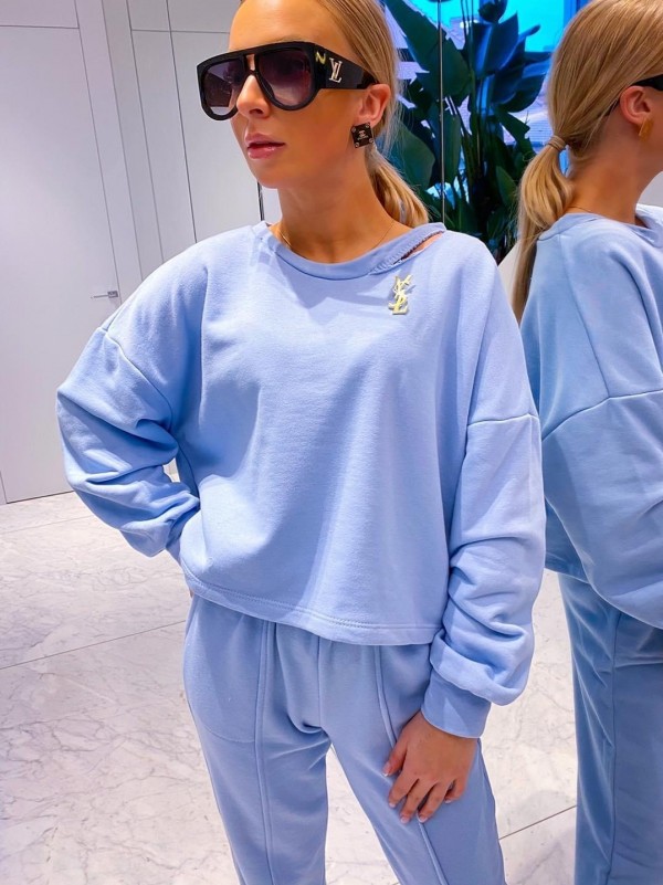 Zelo mehka in udobna ternirka v letošnji trendy barvi. Trenirka se prodaja brez okrasne broške.