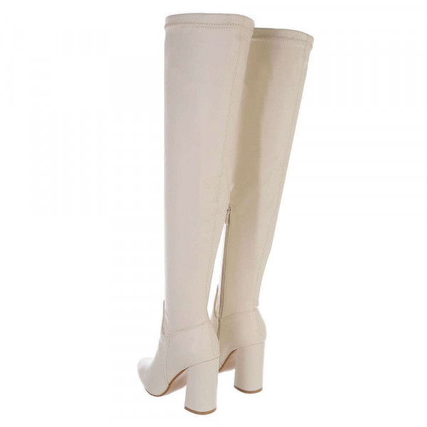 Škornji šez koleno, po zadnjih modnih trendih, ki se odlično kombinirajo. Imajo zadrgo na notranji strani za lažje obuvanje. Višina pete: 8 cm