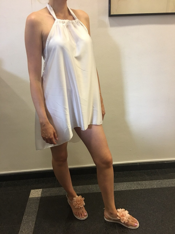 Kratka poletna oblekca, trendi kos oblačila za to poletje za vse modne mačke. Obleka se zaveže okoli vratu in lepo široko pade, nosite jo lahko tudi kot tuniko na hlače.