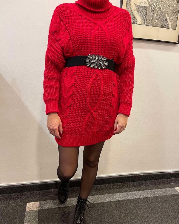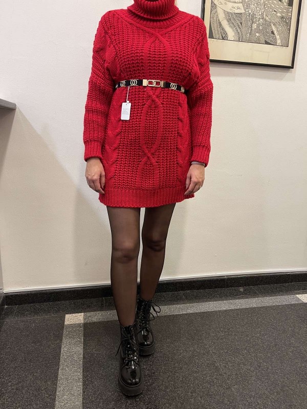 Dolg over size pulover z ovratnikom na puli, ki se lahko nosi tudi kot obleka. Material: 85% acril in 15% volna