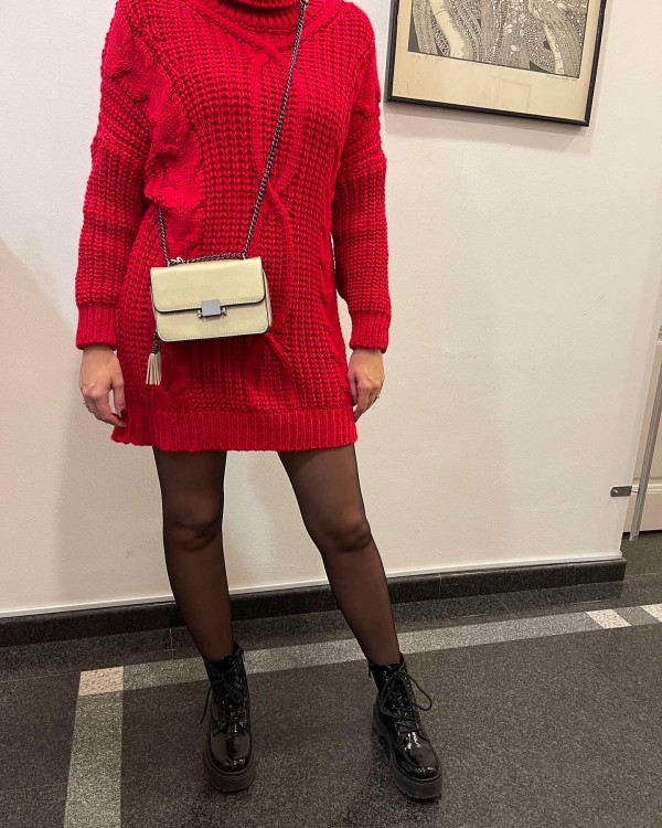 Dolg over size pulover z ovratnikom na puli, ki se lahko nosi tudi kot obleka.