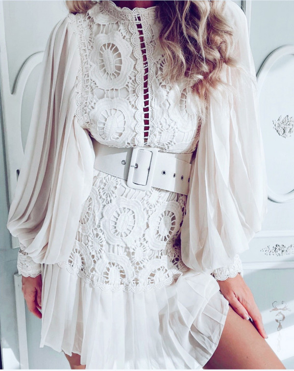 Čudovita obleka, ki ima čipko in pas, da se lepo telira.