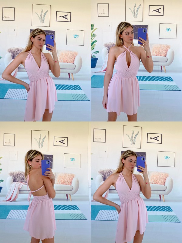 Kratka poletna obelka, ki se lahko zaveže okoli vratu na več načinov. Pod oprsjem je stisnjena z elastiko tako, da lepo pade. Material: 95% poliester in 5% elastan