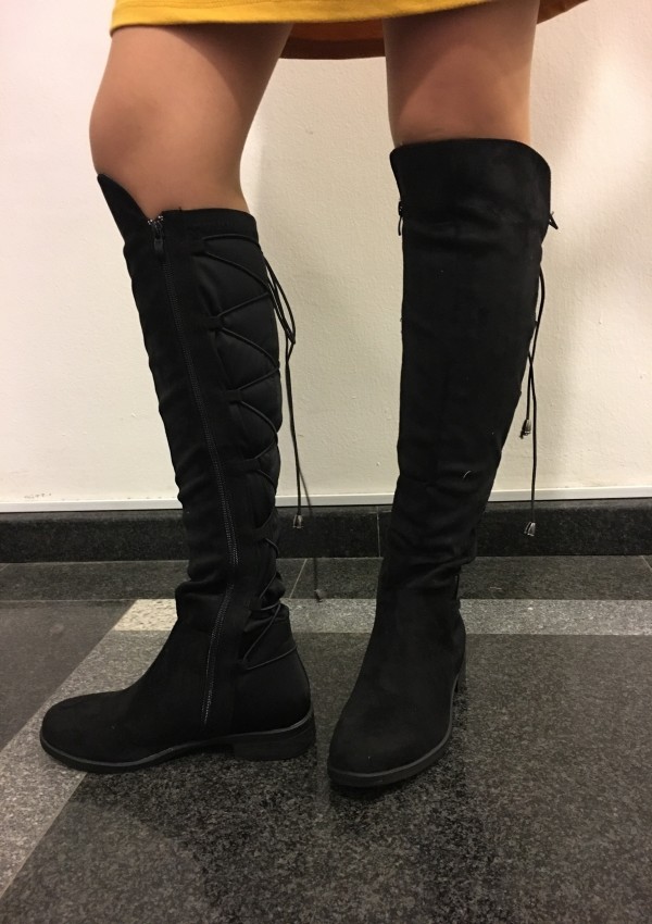 Škornji, ki segajo do kolena in imajo zadnji del škornja iz elastike tako, da se prilagodi nogi in elastična traka za bolj modni izgled škornja. Ob strani imajo zadrgo za obuvanje. Imajo podlogo iz tkanine.